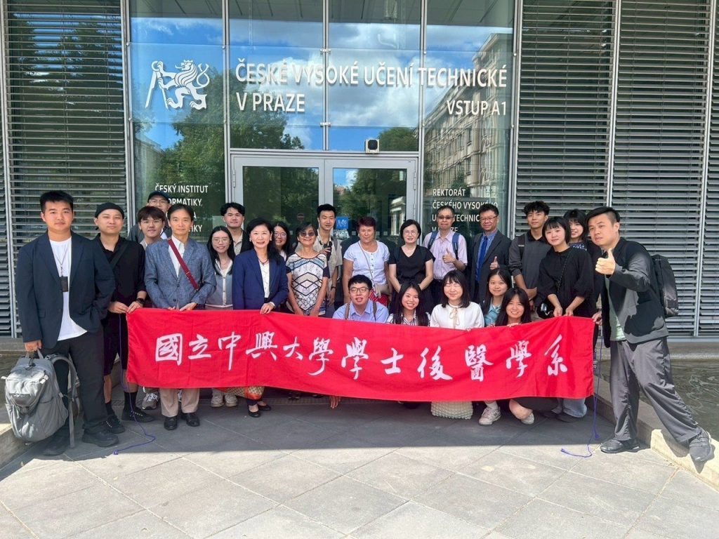 中興大學與童綜合醫院107年簽署學術合作MOU,雙方密切合作多年並每年帶學生至偏鄉踏查學習。今年7月22至28日,在童綜合醫院教學副院長同時也是興大學士後醫學系教授蔡青劭帶領下,學生擴展國際視野,因應童綜合醫院教學副院長蔡青劭開設「全球化與人文關懷:服務學習」課程配合台灣與捷克兩國人文社會領域交流訪問(UAAT-ICU),並在教育部UAAT-ICU「國家重點領域國際合作聯盟–領域整合型計畫」支持下,前往捷克,展開為期一週的國際學術與文化交流,聚焦於「重探跨文化差異:傳統社會邁向數位高齡社會的創新之路」的學習,促使學生透過接觸不同文化的數位健康技術與偏鄉醫療課程,理解文化差異與應用策略。