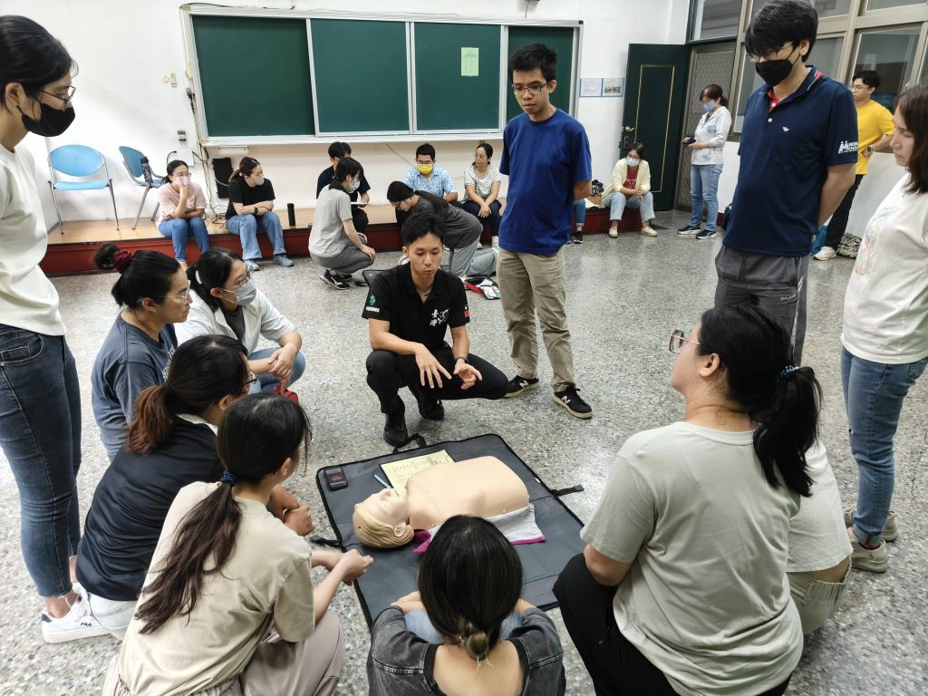 為使AED設備發揮最大效益,9月26日興大學生事務處健康及諮商中心特別攜手社團法人臺灣災難醫療隊發展協會,共同辦理「CPR+AED急救教學暨AED管理員認證課程」,近百位教職員工生參與。課程設計兼具理論與實務,內容包含心肺復甦術(CPR)教學、AED實機操作,以及AED管理員制度培訓,期望透過系統化訓練,讓師生在面對緊急心臟驟停事件時,能展現冷靜與專業,爭取最佳救援時機。