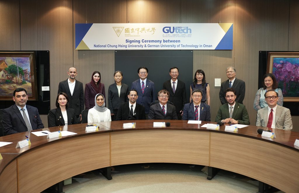 國立中興大學10月15日與阿曼德國科技大學(German University of Technology in Oman, GUtech)正式簽署學術合作備忘錄(MOU),這是臺灣與阿曼近二十年來首次由頂尖大學締結之高等教育合作協議,象徵兩國在高等教育領域交流的歷史性突破與嶄新里程碑。