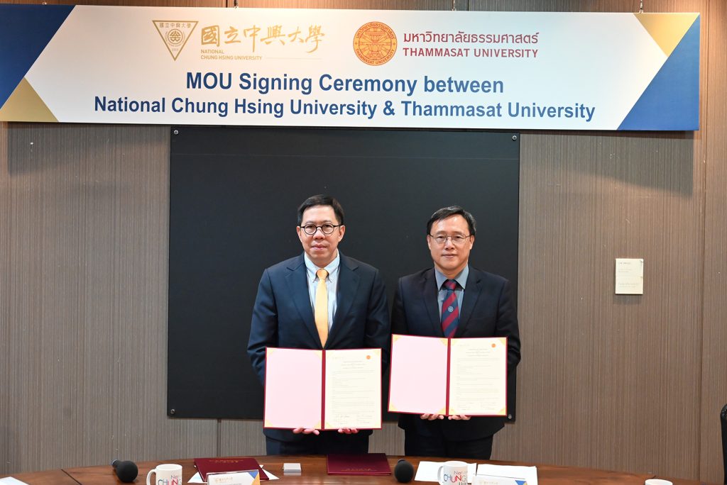 國立中興大學持續推動國際鏈結與多元學術合作,配合政府近年積極推動之新南向政策,於2025年10月23日與泰國頂尖學府——法政大學(Thammasat University)正式簽署校級學術交流合作備忘錄(MOU),由中興大學詹富智校長與法政大學校長Dr. Supasawad Chardchawarn共同簽署,象徵中興大學與法政大學在新南向之領航地位。本校由周濟眾副校長兼國際長代表與法政大學校長Dr. Chardchawarn進行合約交換儀式,並由法政大學國際長Dr. Supreedee Rittironk及本校工學院楊明德院長、法政學院楊三億副院長、管理學院賴榮裕副院長、邱明斌副研發長、人社中心蔡東杰主任及國際處學術交流組蘇怡慈組長出席見證。