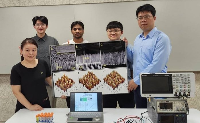 研究團隊設計出一種新型奈米刷狀結構感測平台,藉由半導體蝕刻技術精準控制奈米刷密度,並以硼酸(boronic acid, BA)修飾其表面以提升細菌辨識效能。透過表面工程調節細菌與奈米電極之間的界面交互作用,有效增強細菌附著能力與感測靈敏度,使其在複雜樣品中亦能快速、準確地偵測微量細菌。