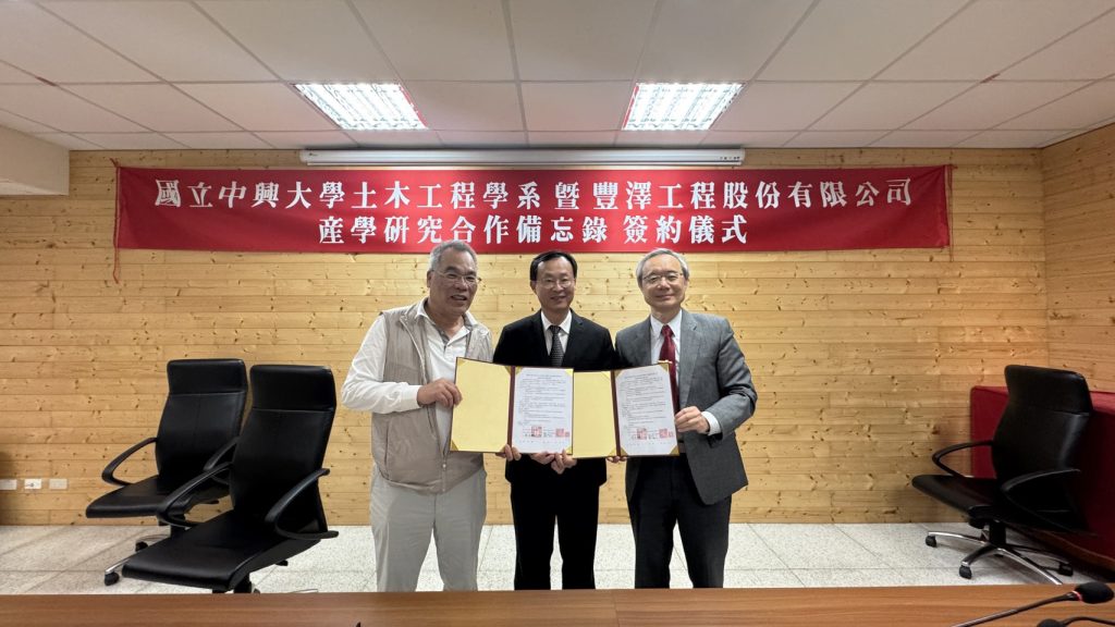 國立中興大學土木工程學系與豐澤工程115年1月26日正式簽署產學合作備忘錄(MOU),攜手揭開智慧營建人才培育的新頁。簽署儀式由中興大學土木工程學系主任余志鵬與豐澤工程總經理莊政庭代表簽署,並由工學院院長楊明德到場見證,象徵產業與學界在數位轉型浪潮下,邁向更緊密且具前瞻性的合作關係。