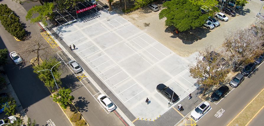 南園停車場工程規劃設置38席停車格,除增加校內停車空間外,也同步優化周邊交通動線,導入「人車分流」理念,並於大學路通往綜合大樓方向新設人行步道,提升師生通行安全與舒適度。此外,工程亦刨除並重新鋪設綜合大樓旁一處老舊瀝青路面,有效改善該區過去在豪雨時容易積水的問題;另臨大學路側原無側溝,本工程內一併增設,改善周遭因大雨不易排水問題。