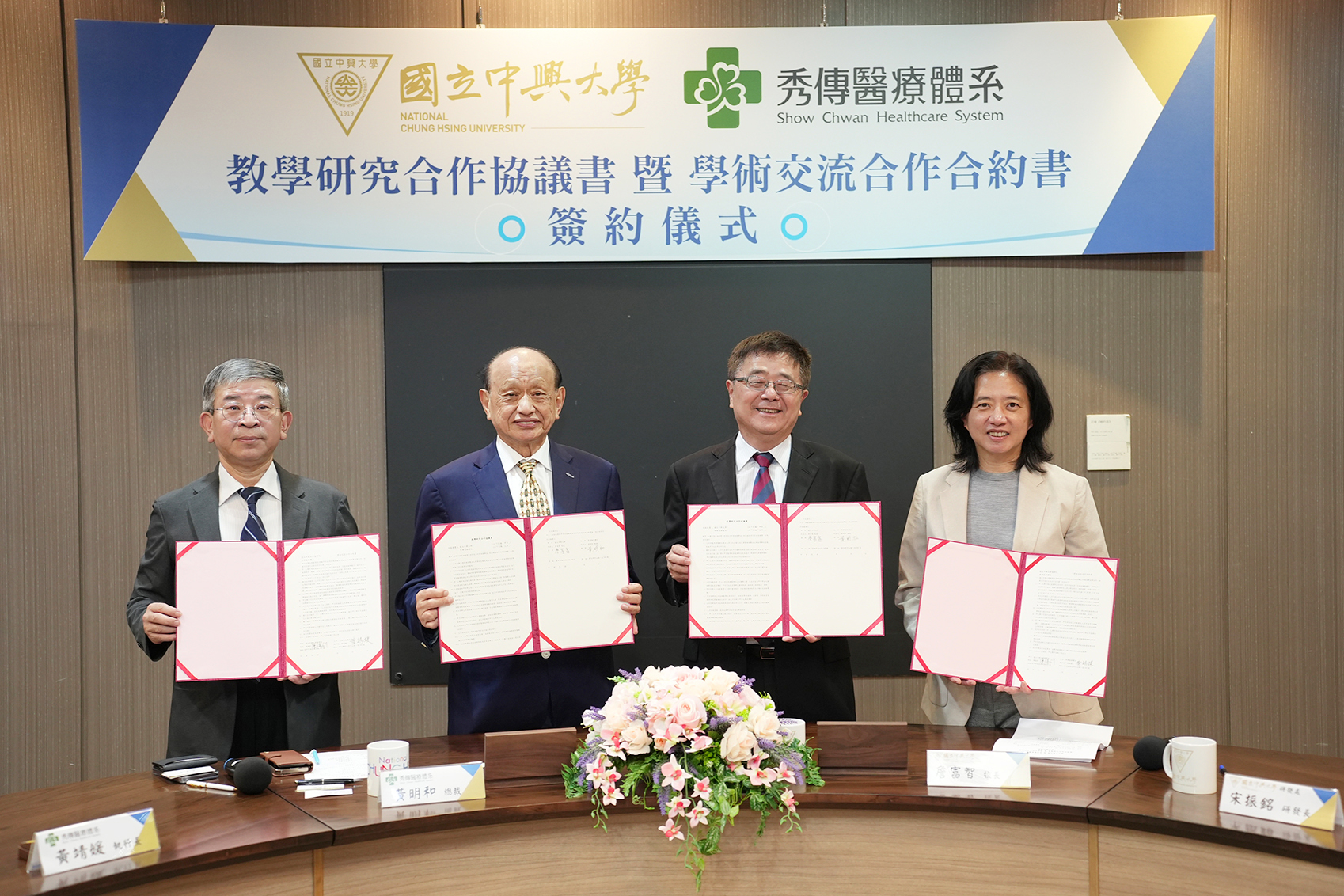 國立中興大學與秀傳醫療體系9月11日共同簽署教學研究合作協議書,由興大詹富智校長與秀傳醫療體系黃明和總裁代表簽約。雙方將展開五年深度合作,秀傳醫療體系每年捐助中興大學新台幣貳百萬元
